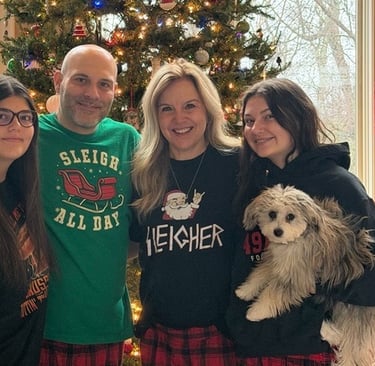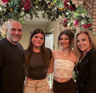 Larry, Remi (younger daughter), Lara (older daughter), Arica (wife)