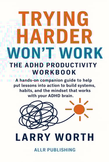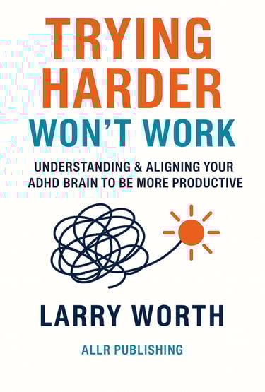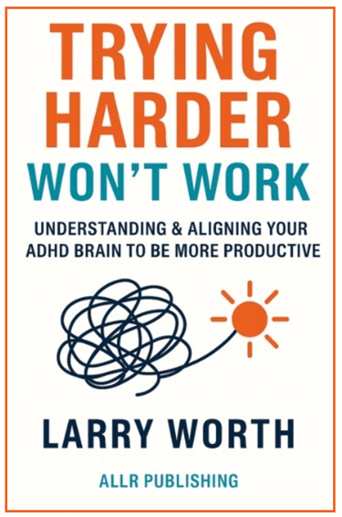 Written by Larry Worth, an ADHDer, proud #girldad of neurodivergent daughters, and 20+ year executive leader building corporate workforce solutions designed to attract and retain neurodivergent employees, this book strips away the shame, guilt, and “try harder” advice that never works, replacing it with real strategies designed for the way your brain actually functions.
